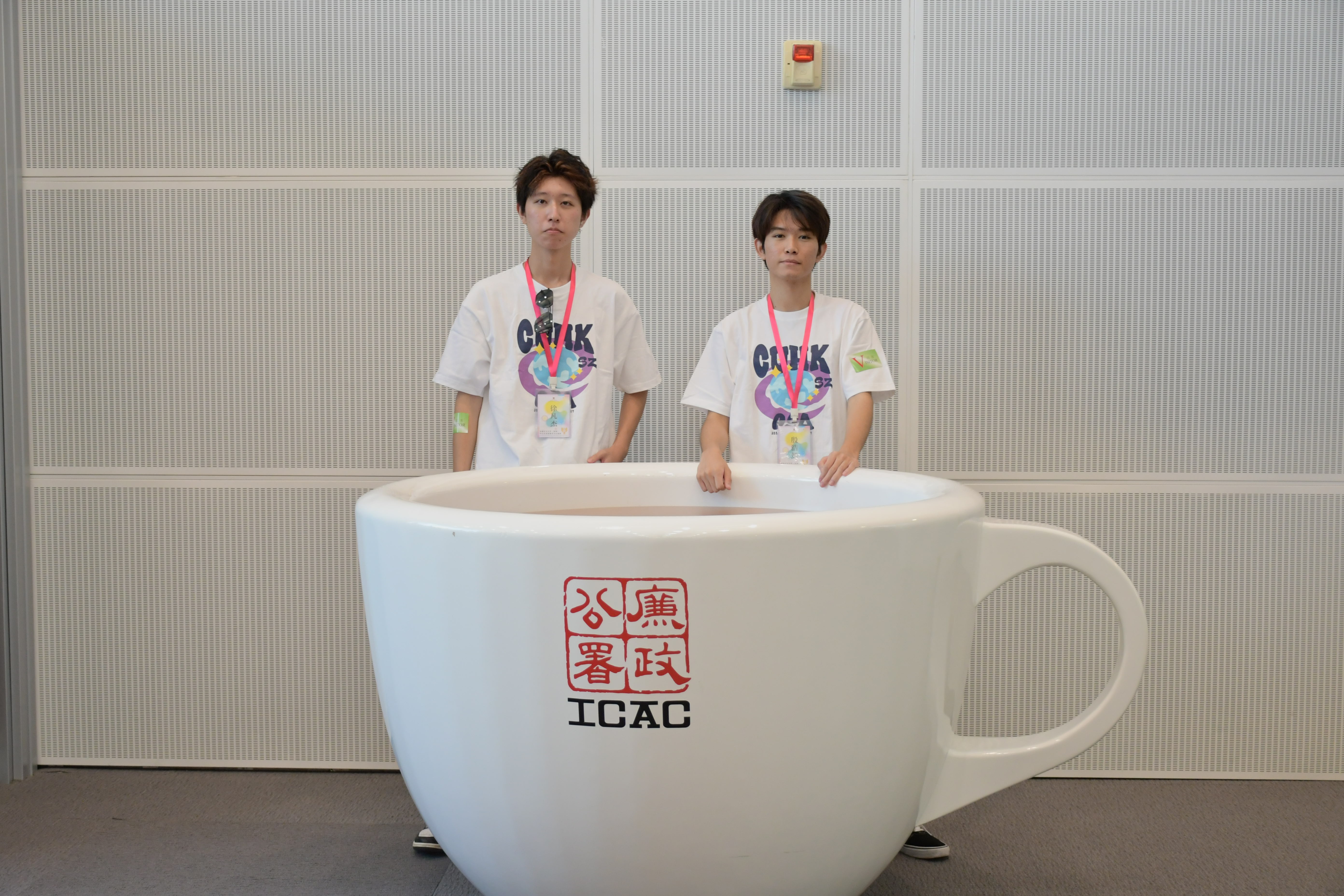 同學們紛紛與“廉署請你喝咖啡之特色咖啡杯合影