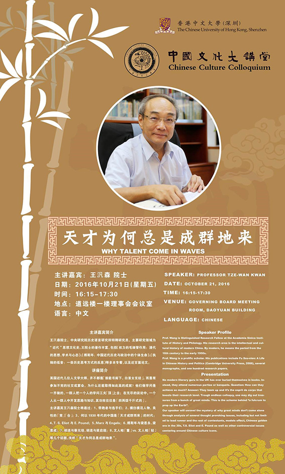 ? ? ? ?主講嘉賓王汎森院士將通過:1、帶跑者與選手們;2、模仿模范人物,良性的「競」「合」;3、何以1930年代的中國是「天才成群而來」的時(shí)代;4、T. S. Eliot與?E. Pound;5、Marx與Engels;6、傅斯年與梁思永、梁思成;7、胡適與蔡元培、胡適與梁啟超;8、文人相「重」vs.?文人相「輕」等幾個(gè)話題,淺析“天才為何總是成群地來”。
