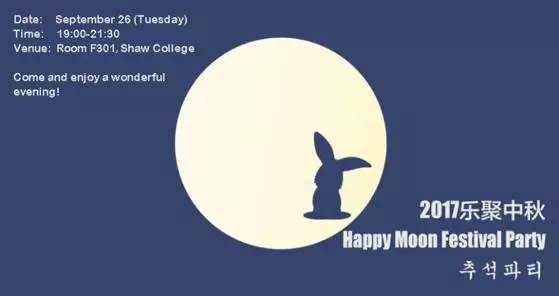 由學勤書院宿生會組織的中秋游園會將于9月27日在學勤書院A棟和B棟間空地舉辦,活動時間為晚上6:30至9:30,歡迎各位學勤的小精靈參加!