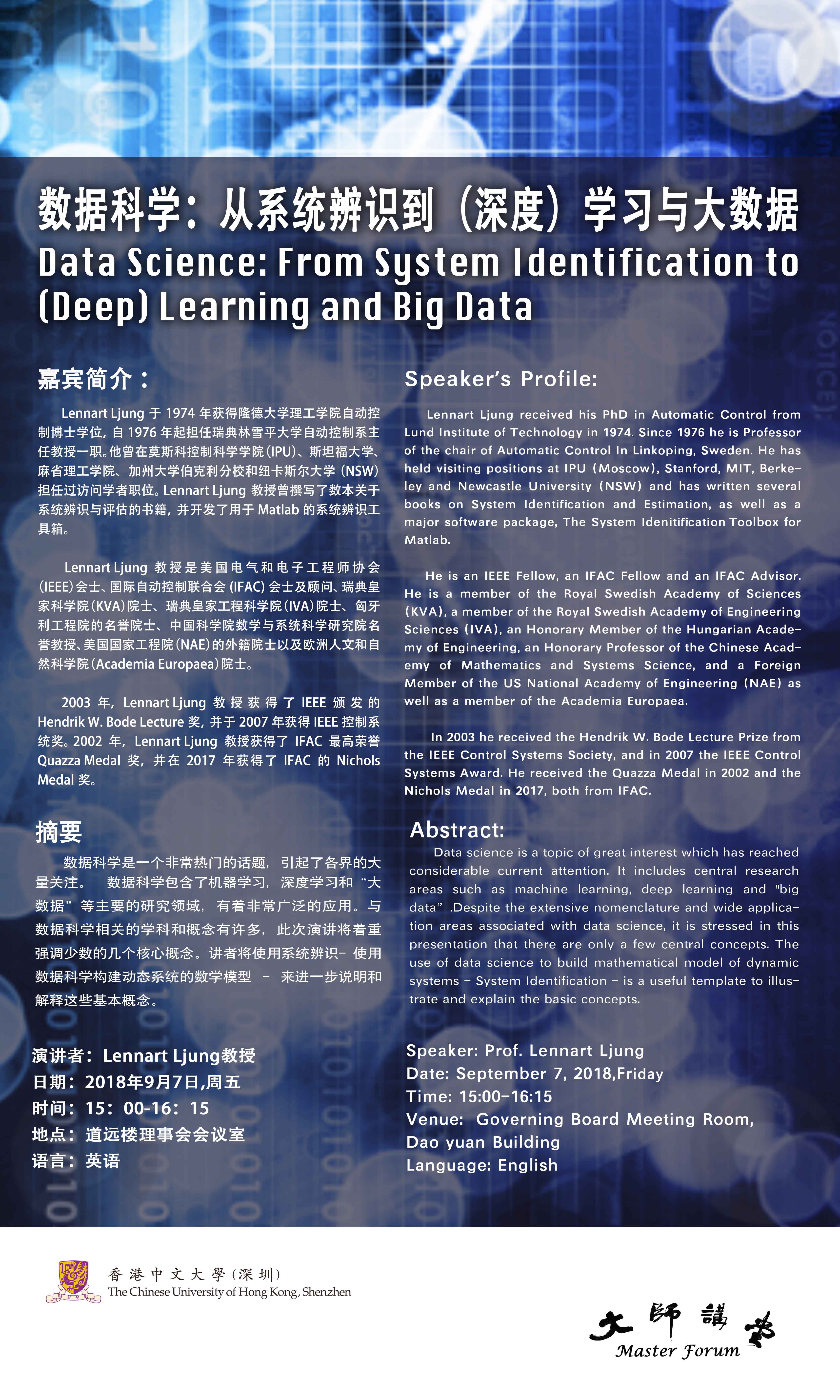【大師講堂】數據科學:從系統辨識到(深度)學習與大數據