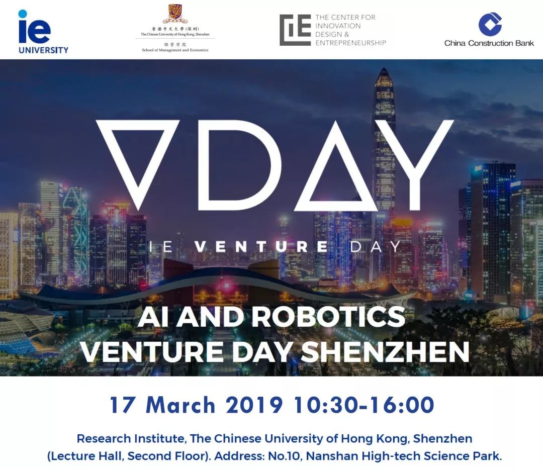 ? ? ? ? 2019年3月17日星期日,香港中文大學(深圳)經管學院、創新創意創業中心將攜手西班牙IE大學人文科學學院(HST),在中國深圳推出首次人工智能及機器人技術主題創業日活動(IE Venture Day)。此次活動將通過挑戰賽及尖峰論壇的模式,最終討論并提出一個當下最前沿且極具競爭力的創業方案,旨在識別和支持使用AI及機器人技術或其他先進技術,解決當今社會問題。創業日活動的參賽者將有機會與創業者、投資人及相關創業領域泰斗分享自己的項目、技術及產品;加入并鞏固創業圈資源與科技圈資源;聆聽并參與企業家對重大社會挑戰的分享討論,對社會挑戰產生積極的影響;提高初創公司平臺高度,增加國際曝光度;跳板至創業或融資下一階段。