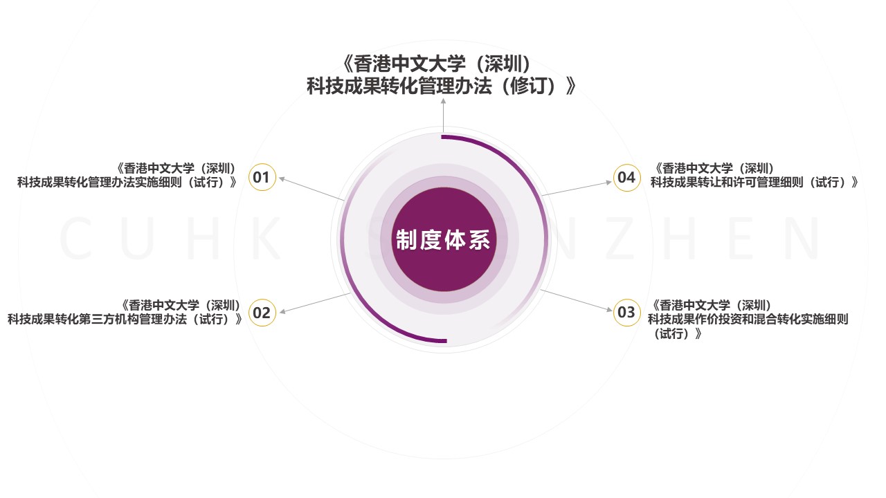 管理制度 查閱文件: 1.《科技成果轉化管理辦法(修訂)》 2.《科技成果轉化管理辦法實施細則(試行)》 3.《科技成果轉讓和許可實施細則(試行)》 4.《科技成果作價投資和混合轉化實施細則(試行)》 ? ?